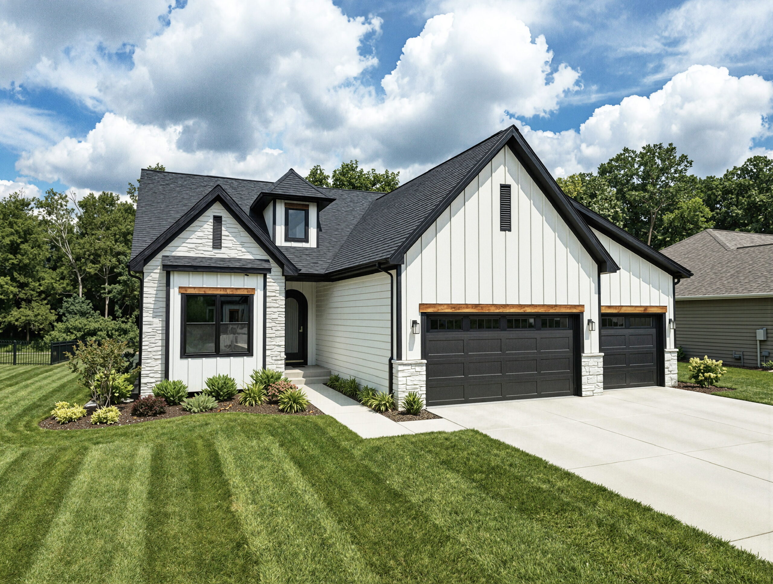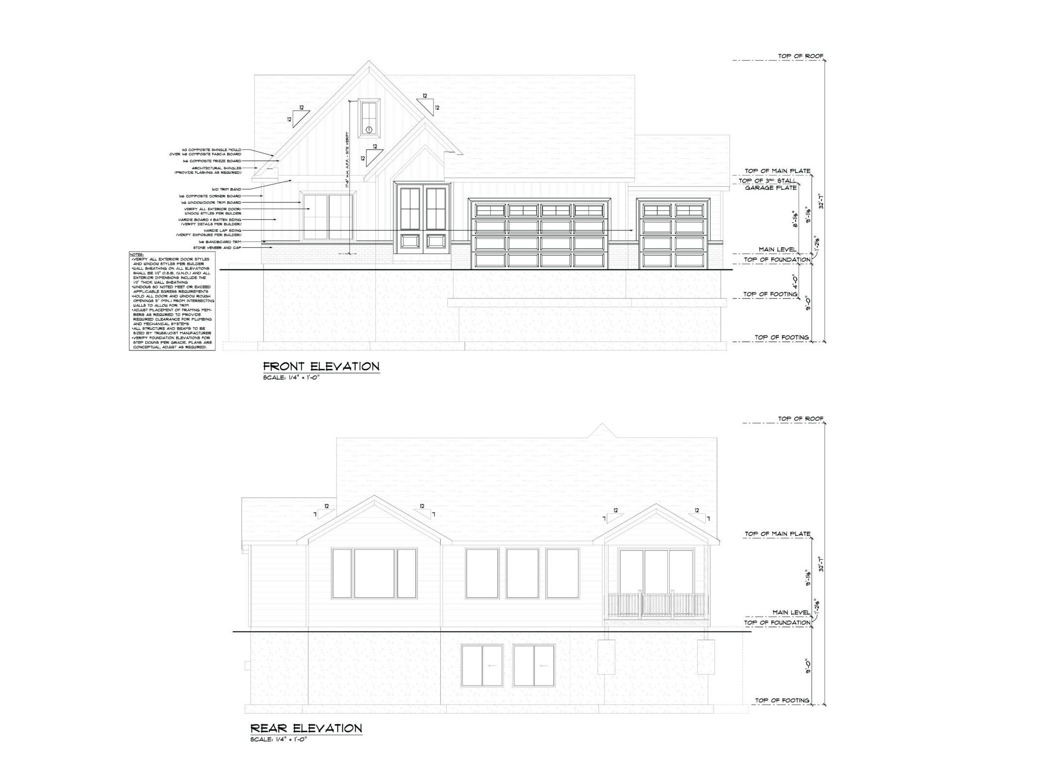 • 3 car side load garage